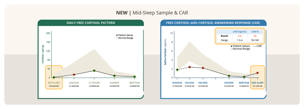 This represents a change to DUTCH Plus collection instructions! Patients will be encouraged to collect IF they wake during their sleep to assess cortisol’s potential role in insomnia. However, when patients do not wake during the night, directions will now instruct them to collect this additional sample around noon to add a mid-day cortisol assessment to the DUTCH Plus.
